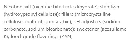 Cooling/mint-style flavor blend (not itemized) (ZYN)